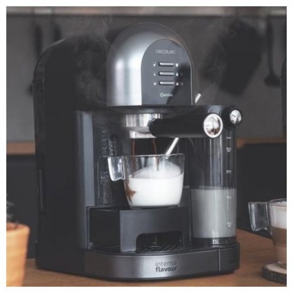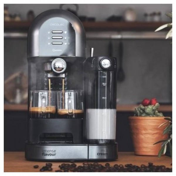 Cafetera semiautomática Power Instant-ccino 20 Chic Serie Nera de Cecoteccon tanque de leche para disfrutar de los mejores espressos y cappuccino con un toque. Es apta para café molido y café en cápsulas, se adapta a todos los gustos. Gracias a sus 20 bares consigue la mejor crema y el máximo aroma en cada café.