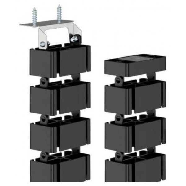 - Cuatro compartimentos separados mantienen los cables sin enredos, mientras que la columna abierta permite añadir o quitar cables fácilmente