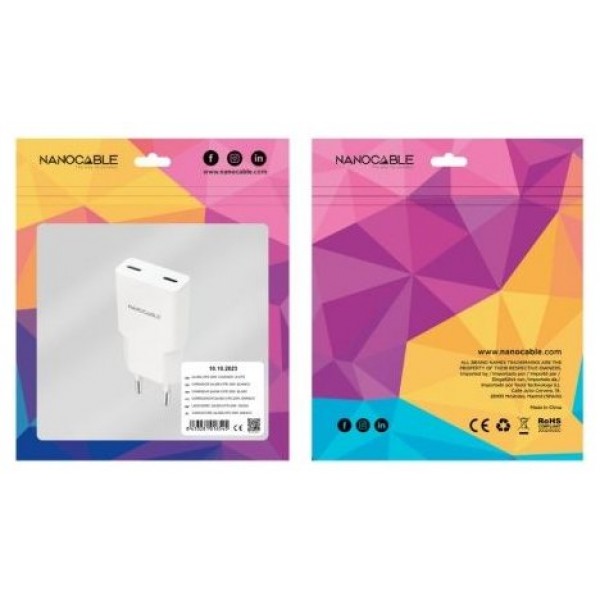 - Contenido del paquete: 1 x Cargador 2xUSB-C/PD 20W, blanco