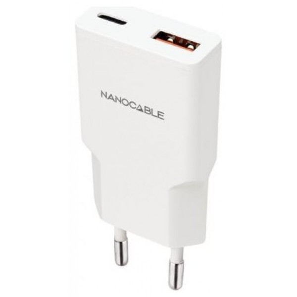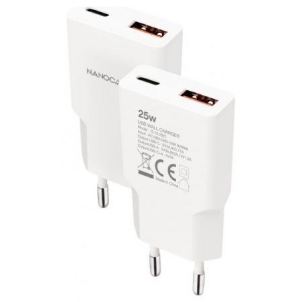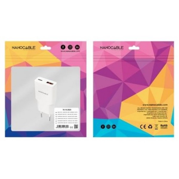 Nanocable Cargador USB-C/PD + USB-A/QC 25W Blanco