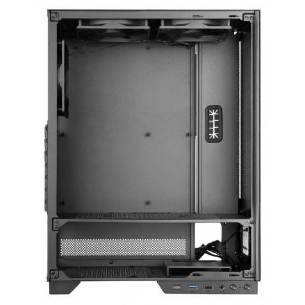 Incluye 3 ventiladores de 120 mm preinstalados (2 superiores, 1 trasero), permitiendo un flujo de aire constante desde frontal a extracción superior y trasera. Admite hasta radiadores de 240 mm y gráficas de hasta 332 mm, adaptándose tanto a sistemas de aire como refrigeración líquida sin comprometer espacio ni accesibilidad. Dispone de bahías para 1 HDD de 3,5" y 2 SSD de 2,5", combinando velocidad y capacidad. Gracias a sus puertos avanzados, como USB-C, USB 3.0, USB 2.0 y salida combo de audio HD/micrófono, maximiza compatibilidad con tecnología actual.
