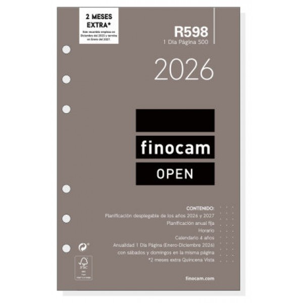 RECAMBIO ANUAL 2026 R598 OPEN500 117X181MM DIA PAGINA FINOCAM 711670026 (Espera 4 dias)