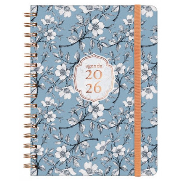 Agenda de espiral con tapa dura de cartón forrado con peliculado mate antirrayaduras. Diseño elegante y en tendencia con detalles estampados metalizados. Ideal para uso personal y/o profesional. Con goma elástica y esquinas microperforadas para localizar rápidamente el día/semana en curso. El diseño interior es limpio y fácil, con espacio suficiente para organizar tus proyectos, tareas y compromisos. Contiene información de interés en la anualidad y otros extra para la organización personal. Además, incorpora un set de adhesivos temáticos. Formato similar a DIN A5 con las ventajas de una agenda portable y una de sobremesa. Duración: Enero 2026 - Diciembre 2026 (12 meses). Interior: Semana Vista Horizontal. Visión de la semana completa en horizontal que permite la escritura natural. Con espacio para concretar horario. Con información de los festivos de España. La anualidad de la agenda incluye la información relativa a: onomástica, festivos nacionales, cambios de estación e inicios de los años nuevos chino, musulmán, ortodoxo y hebreo. La agenda dispone también de otros contenidos extra: datos personales, calendarios, horarios, objetivos del año, plan anual, fechas importantes, otras fechas, hojas para checklist, hojas para notas, hoja para ocio, hojas para teléfonos, direcciones y e-mails y dos hojas de pegatinas orientadas a la organización personal. Artículo en español con anualidad multilingüe: español, euskera, gallego y catalán. Formato: E10 - 155x212 mm. Tapas de cartón forrado con peliculado mate antirrayaduras. Espiral doble metálica. Papel. 80 g/m². Papel FSC®.