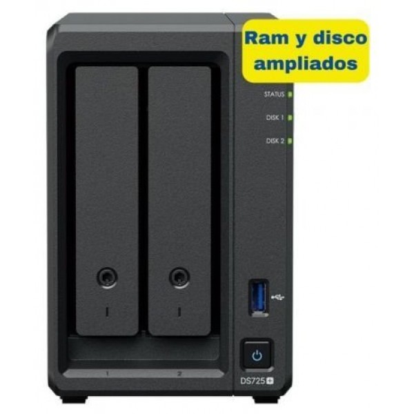 NAS Synology Diskstation DS725+/ 2 Bahías 3.5"- 2.5"/ 4GB DDR4/ 8TB/ Formato TorreDiskStation DS725+..