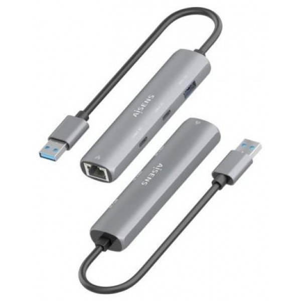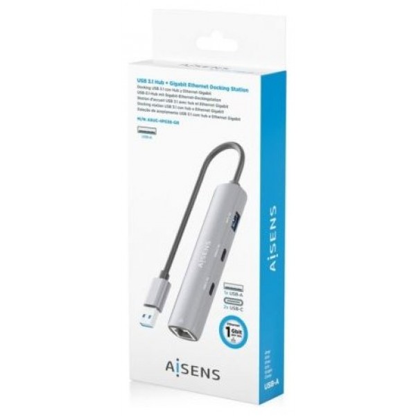ASUC-4P036-GR – USB3.0 Dock USB-A a Ethernet Gigabit + HUB 2xUSB-C+1xUSB-A, Gris, 15cm