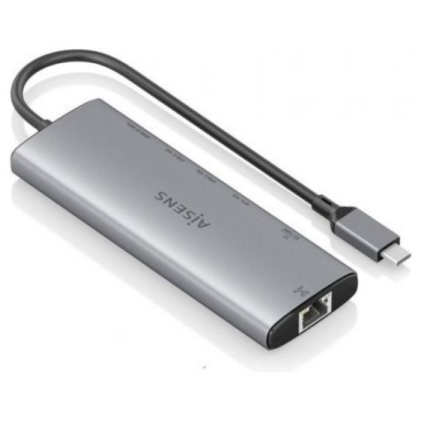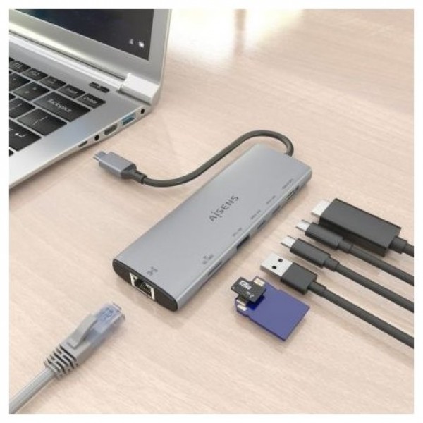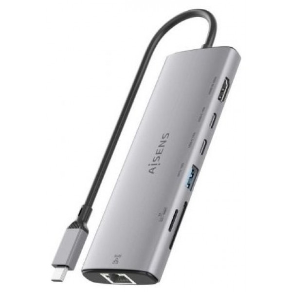 AISENS – USB-C DOCK 7 en 1, USB-C a 1xHDMI, 1xRJ45, 1xUSB-A 10G, 2xUSB-C 10G, 1xSD, 1xMICRO SD, GRIS, 20CM