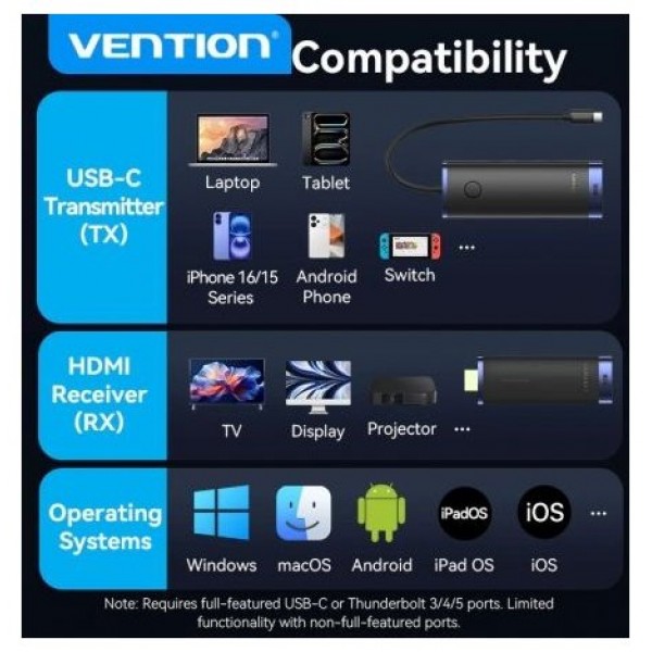 Adaptador/Transmisor de vídeo inalámbrico USB Tipo-C 3.2 - HDMI Vention TPVBB