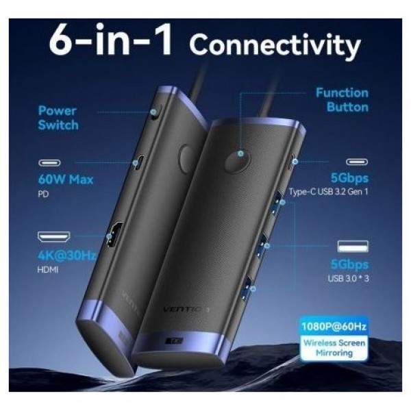 - Nombre: Estación de acoplamiento HDMI inalámbrica USB-C 6 en 1