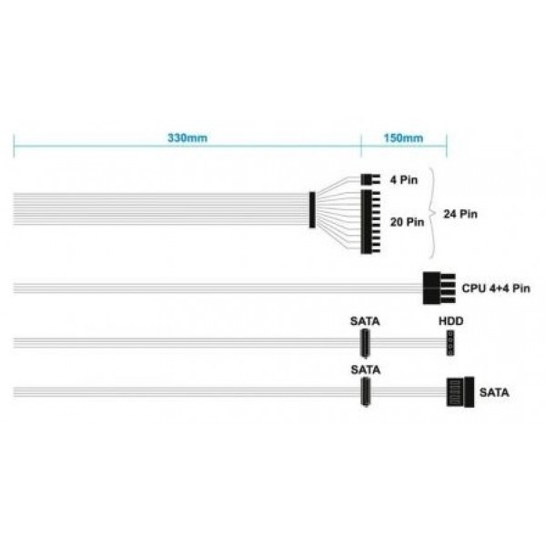 - 1 conector SATA + 1 conector Molex 330+150mm