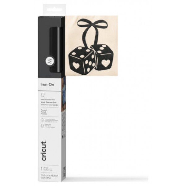 Cricut 2011788. Tipo de producto: Rollo de vinilo de termotransferencia, Tipo: Vinilo de termotransferencia liso, Color del producto: Negro. Ancho: 305 mm, Longitud: 483 mm. Tipo de embalaje: Envase para colgar
