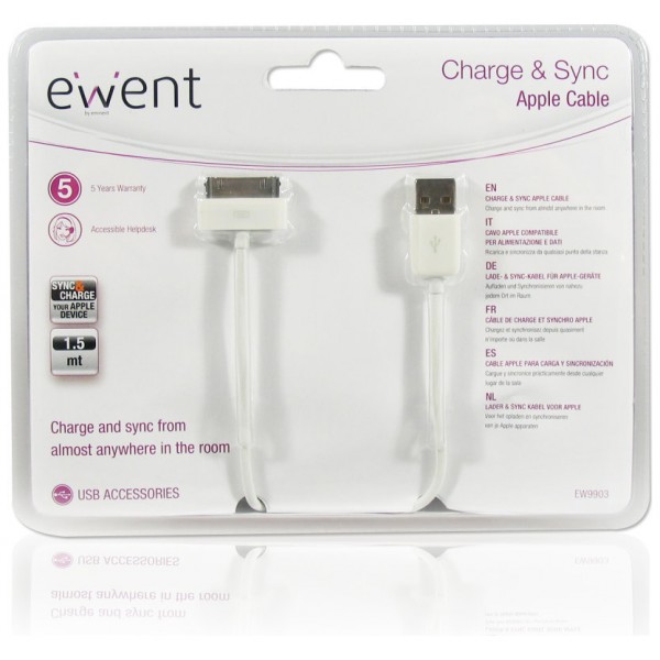 EWENT CABLE USB2 A APPLE 30 PIN 1.5M BLANCO (EW9903) (Espera 4 dias)