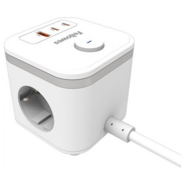 - Su forma cúbica reduce la acumulación de enchufes y deja más espacio para los dispositivos.