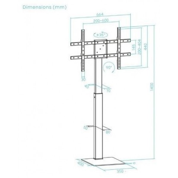 “MIDAS” Soporte de Suelo para Pantallas 37"- 70", Rotación 90°, Negro
