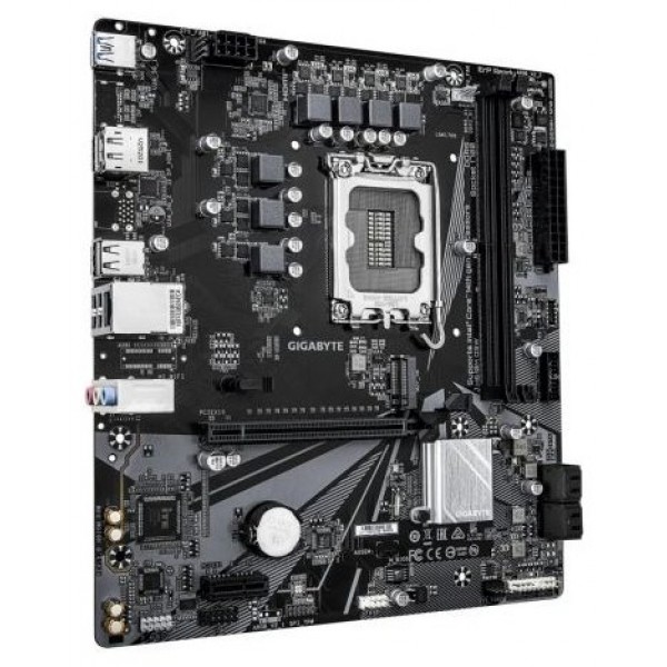 Su formato Micro-ATX de 244 x 220 mm permite integrar todas las funciones esenciales en un tamaño reducido. Incorpora soporte para DDR5 de hasta 5600 MHz, ranura PCIe 4.0 x16 y almacenamiento NVMe PCIe 3.0 para un rendimiento rápido y estable.Conectividad completa y sonido envolvente