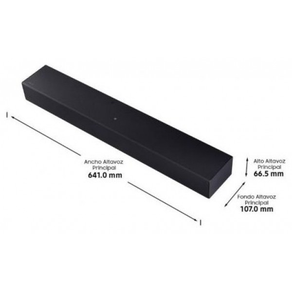 - Dimensiones barra de sonido: 641 × 66.5 × 107 mm