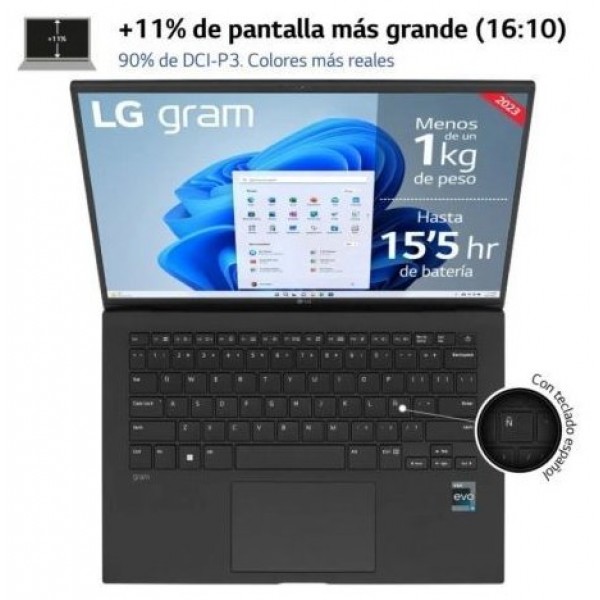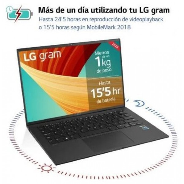 LG gram ha sido certificado por Intel en la plataforma EvoTM al incorporar los nuevos Procesadores de 13a generación y la nueva Gráfica Iris Xe para trabajar con contenido 4K UHD con máxima fluidez. Incorpora una memoria RAM de última generación LPDDR5, disco duro SSD NVMe de 4ª generación con doble ranura para ampliar; permitiendo añadir recursos a tu equipo cuando lo necesites. En cuanto a conectividad, se ha incluido el máximo de puertos posibles. Entre dichas conexiones, cuenta con un USB-C con ThunderboltTM 4 incorporado, que permite una velocidad de transferencia de datos de 40Gbps, carga de dispositivos y video 5K, todo con un solo cable; garantizando su compatibilidad en el tiempo con diversos periféricos. El LG gram es uno de los portátiles más silenciosos y eficientes térmicamente del mercado, gracias a la optimización del sistema de ventilación, que permite mover un 50% más de caudal de aire que generaciones anteriores, con un nivel de ruido de solo 25dB