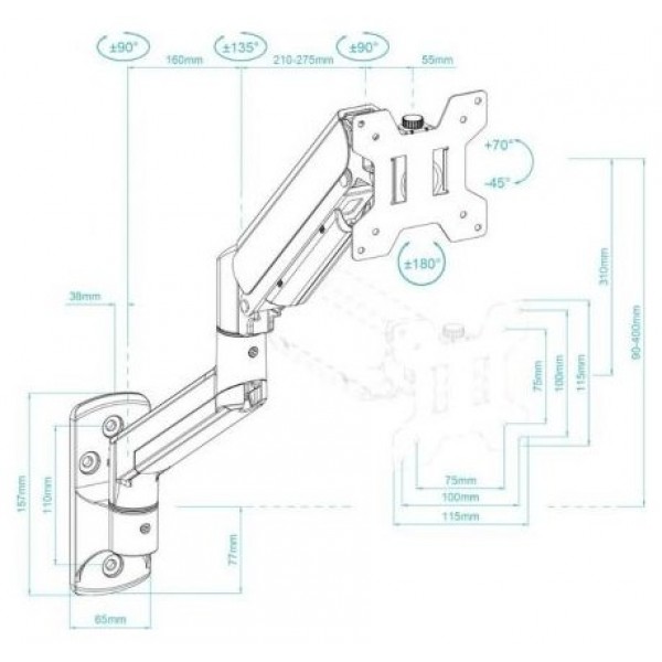 Tooq Soporte Pared LP1334TNR-B 1 brazo 13-34 Negro