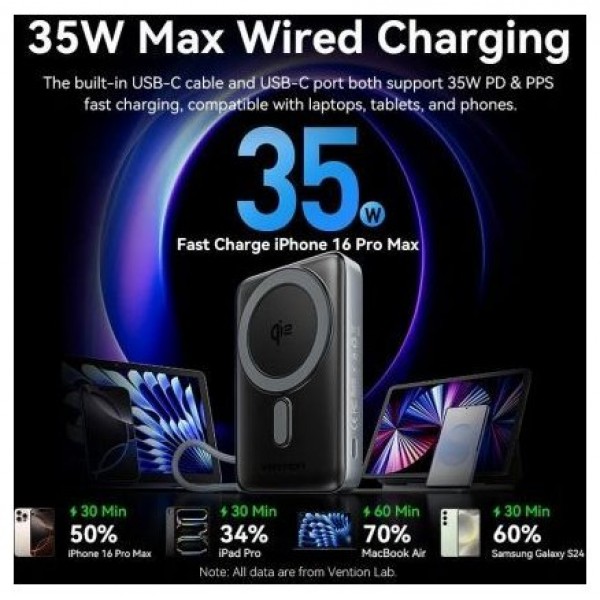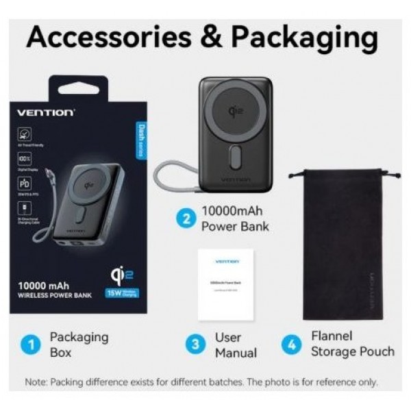 Powerbank 4800mAh Vention FHRW0/ 22.5W/ Blanca/ Incluye Cable USB Tipo-C y LightningPowerbank 4.800m..