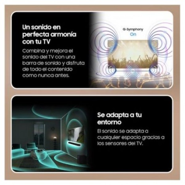 - Compatibilidades: SmartThings App, Q-Symphony, Tap Sound, Chromecast, Spotify Connect (Hi-Fi), AirPlay, Dolby ATMOS inalámbrico, Roon Tested