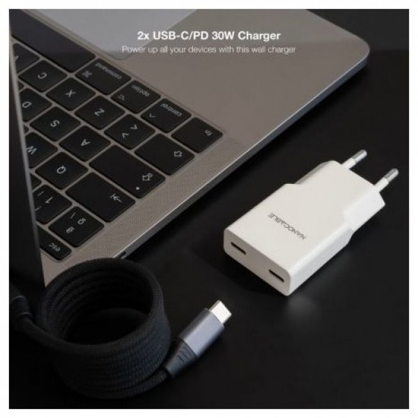- 1 x Cargador 2xUSB-C 30W, Blanco