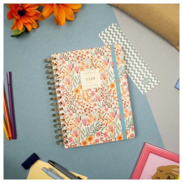 Agenda de tapa dura de cartón forrado con peliculado mate antirrayaduras. Con espiral doble, goma elástica y esquinas microperforadas para localizar rápidamente el día/semana en curso. Esta agenda se ha creado en colaboración con la diseñadora e ilustradora Moniquilla, obteniendo unas agendas bonitas y funcionales. Con una estética limpia y minimalista, contiene información de interés en la anualidad y otros contenidos extra. Además, dispone de dos marcapáginas y de adhesivos temáticos orientados a la organización personal. Formato similar a DIN A5 con las ventajas de una agenda portable y una de sobremesa. Duración: Enero 2026 - Diciembre 2026 (12 meses). Interior: 1 Día Página. Amplio espacio de escritura para cada día. Dos líneas por hora. Con espacio en el lateral derecho para anotar las tareas del día no asociadas a una hora en concreto. Con planificación mensual cuadriculada al inicio de cada mes.Con información de los festivos de España. La anualidad de la agenda incluye: festivos nacionales, cambios de estación y días señalados. Contiene planificación mensual cuadriculada con las fases lunares intercalada en la anualidad. La agenda también dispone de otros contenidos extra: datos personales, calendarios, planificación anual en columnas, horarios, objetivos personales, planes, maleta, apartado para libros/películas/series/pódcast, hojas para anotaciones y tareas, contactos, adhesivos temáticos y dos marcapáginas. Idioma del artículo: español. Formato: E10 - 155x212 mm. Tapas de cartón forrado con peliculado mate antirrayaduras. Espiral doble metálica. Papel. 80 g/m². Papel FSC®.