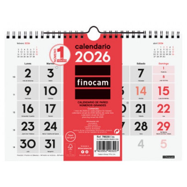 CALENDARIO 2026 NEUTRO PARED NUMEROS GRANDES S 210X150MM FINOCAM 780200026 (Espera 4 dias)