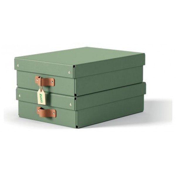PACK 2 CAJAS DE ALMACENAMIENTO CARTÓN MEDIANA BAJA COLOR VERDE LEITZ 61480050