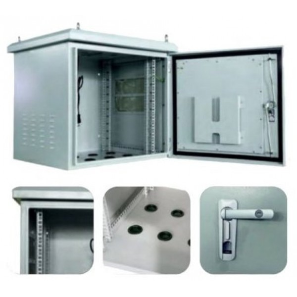 Su estructura de acero galvanizado DC51D/ SPCC (2 mm en perfiles y 1 mm en paneles) se remata con pintura epoxi‐poliéster gris RAL 7035 y un tejadillo vierteaguas que sella la lluvia.