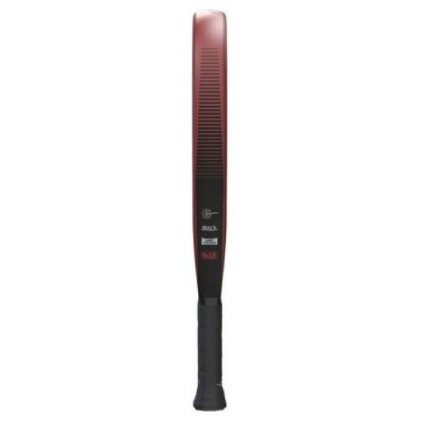Está fabricada con carbono 12K en las caras y un tubular de carbono 3K, materiales que ofrecen una mayor firmeza y reactividad, ideales para un juego técnico. La combinación de materiales proporciona un tacto medio, lo suficientemente firme como para generar potencia, pero con el suficiente confort como para no comprometer la precisión en los golpes. Incluye el sistema de correa reemplazable y un acabado mate que aporta elegancia y durabilidad