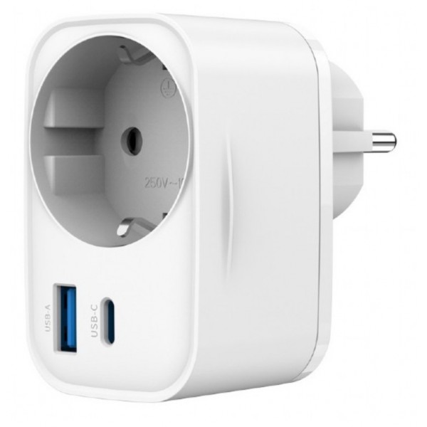 CARGADOR RAPIDO GEMBIRD USB DE 2 PUERTOS CON TOMA DE CA DE PASO 20 W BLANCO
