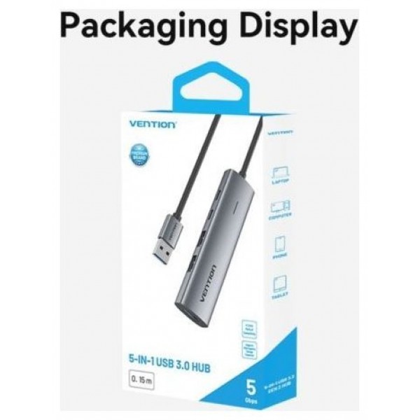 Vention HUB USB-A 3.2 a USB-C 3.2Gen1/ USB3.0x3USB-C 0.15m TGXHB Aluminio