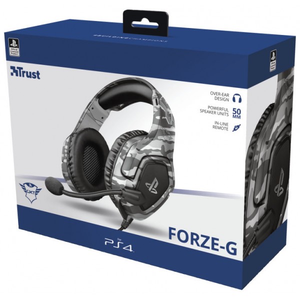 Auriculares gaming exclusivamente para PlayStation®4 con micrófono plegable y diadema ajustableCon licencia oficial para PS4™Diseñados específicamente para este sistema, los auriculares para gaming Forze de Trust para PlayStation®4 consiguen que te sumerjas completamente en el juego. Como producto con licencia oficial para PS4™, el uso de los auriculares da como resultado una experiencia definitiva de gaming con PlayStation®4. Sea cual sea el juego que elijas, prepárate para vivir grandes sorpresas.Sonido potenteDisfruta de un sonido nítido y potente, tanto si estás en zona de guerra, en un estadio o en un circuito de carreras. Gracias a las potentes unidades de altavoz de 50 mm de los auriculares, el sonido de las sesiones de gaming será más envolvente que nunca.Se ajusta para tu comodidadLas suaves almohadillas circumaurales garantizan que los auriculares sean cómodos, incluso después de horas de juego. Utiliza el micrófono para dar instrucciones claras a tus compañeros de equipo o doblarlo fácilmente cuando quieras jugar sin conexión.Robustos y elegantesCon una diadema reforzada ajustable, los auriculares no solo son cómodos, sino también resistentes. Y como producto con licencia oficial para Sony, su potente diseño combina perfectamente con la imagen del sistema PlayStation®4.Solo hay que enchufarlosActiva los auriculares simplemente conectándolos al controlador inalámbrico DUALSHOCK®4. El cable trenzado de nailon de 1,2 m proporciona un espacio más que suficiente para disfrutar de una cómoda experiencia de gaming. Y, gracias a los botones de mando en el cable, puedes ajustar el volumen de los auriculares o silenciar el micrófono sin tener que acceder a un menú.