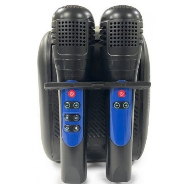 - Dos micrófonos para cantar a dúo, con 4 botones con efecto vibrato, efecto que simula coros y efectos para modificar la voz.
