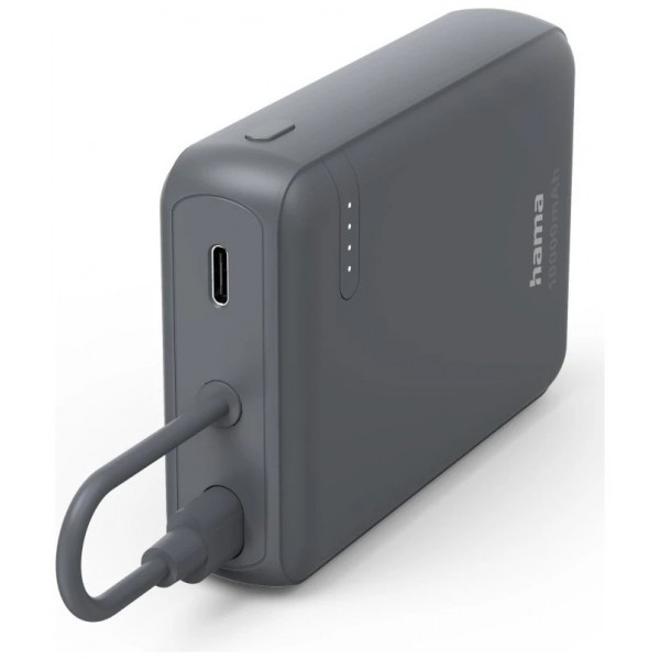 POWERBANK HAMA POWER PACK 10000 mAh 2xUSB-C INDICADOR DE CARGA CABLE INTEGRADO ANTRACITA