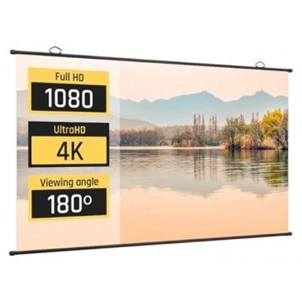 | Características | - Área visible de 100" (220 x 124 cm) - Formato: panorámico 16:9 - Factor de ganancia: 1,1 - Ángulo de visión: 180º - Ideal para proyectar vídeo y fotografías - Sin bordes negros perimetrales - Apta para interiores - 2 ganchos en barra superior - Extremadamente fácil de montar y desmontar - Tela: blanca mate (frontal), negra opaca (trasera) - Ideal para cualquier tipo de proyector, SVGA, XGA, 3D, HD, Full HD y 4K - Medida tubo (enrollada): 228 x 6 x 6 cm - Peso total: 5,5 kg |