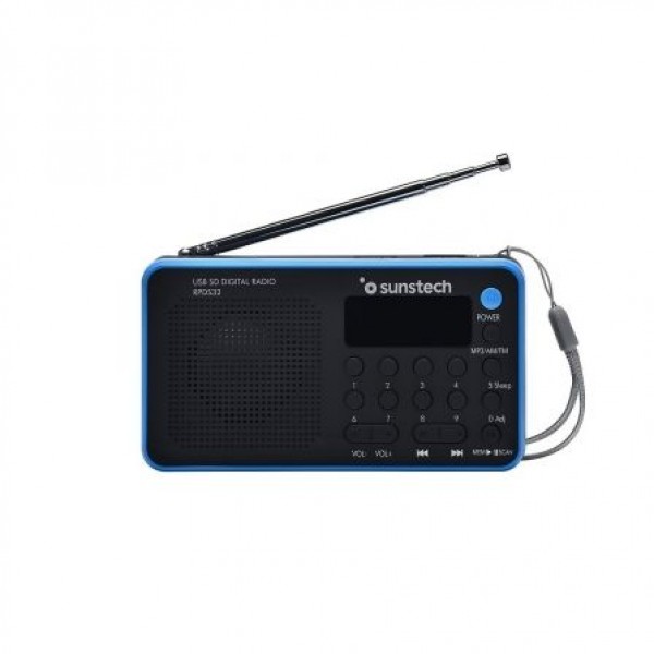 Radio portátil digital AM / FM súper compacta con puerto USB y ranura para tarjetas microSD / SD / MMC.