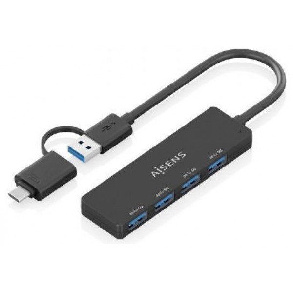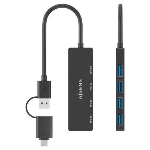 AISENS - HUB USB 3.1 USB-C USB-A, USB-C/M+USB-A/M-4xTIPO A/H, NEGRO, 15CM