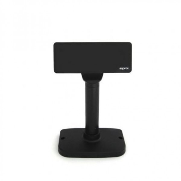 Visor de cliente alfanumérico fluorescente al vacío.. Visor de cliente para punto de venta, de 20 caracteres y 2 líneas, ideal para informar al cliente del los datos más relevantes del proceso de compra, marcando unidades y precios de los productos a medida que pasan por el lector de códigos.. El visor appVFD01 destaca por su funcionalidad y adaptabilidad a diferentes entornos, permitiendo una configuración a tres alturas y una rotación del cabezal máxima de 355º.. Especificaciones:. • Visualización: Pantalla fluorescente al vacío. • Nº de caracteres: 40 (20 columnas x 2 líneas). • Brillo: 500 - 1.000 cd/m2. • Tipo de carácter: 95 Alfanuméricos, 32 caracteres internacionales. • Tamaño del carácter: 6.7 (H) x 3.7 (W) mm.. • Tamaño del punto (X x Y): 0.80 x 0.70 mm.. • ángulo de visión: Max. 60º. • Rotación horizontal: Max. 355º. • Modo de comandos: LD220, EPSON POS D101, AEDEX, UTC/S, UTC/P, ADM788, DSP800, CD5220, EMAX, LOGIC CONTROL. INTERFAZ. • USB. GENERALES. • Conexión: 9.600 o 19.200 bps. • Tiempo medio de vida: 30.000 horas. • Consumo: 5-24 VDC. • Dimensiones: 169,5 x (Altura variable de 273 a 400) x 98,5 mm.. • Peso: 800g.. • Color: Negro. • Incluye: Cable USB
